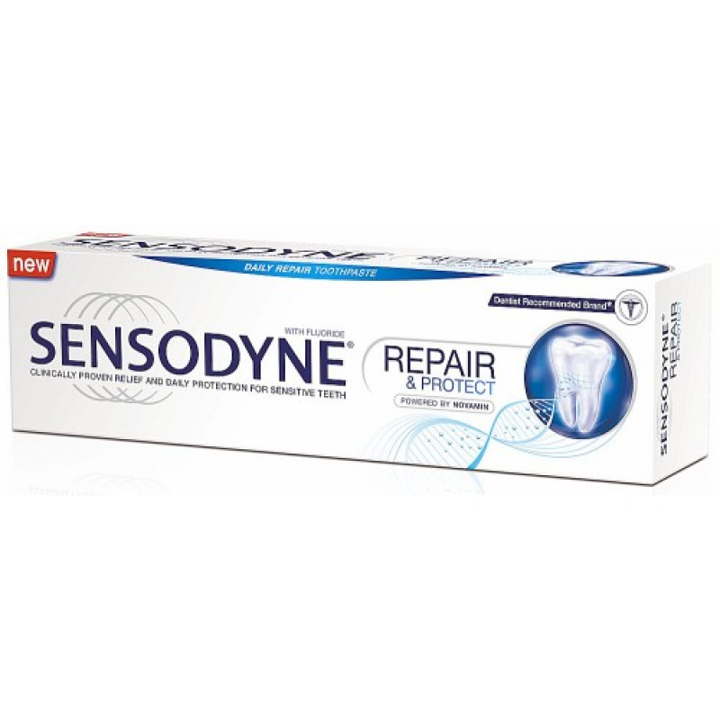 Εάν ναι, πρόκειται για σημάδι ότι τα δόντια σας μπορεί να έχουν ευάλωτα σημεία εκτεθειμένης οδοντίνης, που είναι η αιτία της ευαισθησίας. Τώρα, για πρώτη φορά, αυτές οι περιοχές είναι δυνατό να αναδομηθούν με μια νέα οδοντόκρεμα από τη Sensodyne. Η Sensodyne Repair & Protect είναι μια νέα, πρωτοποριακή οδοντόκρεμα που αναδομεί τις ευαίσθητες περιοχές των δοντιών σας*. Περιέχει την προηγμένη τεχνολογία NovaMin®, που εντοπίζει τα ευαίσθητα σημεία και βοηθά στην αναδόμηση τους, απελευθερώνοντας τα δομικά στοιχεία των δοντιών: ιόντα ασβεστίου και φωσφόρου, τα οποία δημιουργούν ένα προστατευτικό κάλυμμα πάνω από την εκτεθειμένη οδοντίνη.
