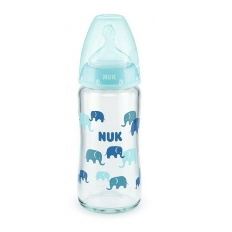 NUK First Choice+ Μπιμπερό Γυάλινο 0-6m Μπλε Θηλή Σιλικόνης Με Δείκτη Θερμοκρασίας Κατά Των Κολικών 240ml